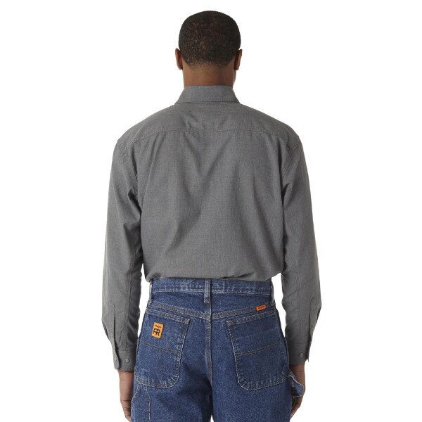 This Wrangler FR Twill Work Shirt combines style, comfort and compliance all in one! A button-down collar and chest pockets add a polished look, while orange Wrangler ID labels on the sleeve and chest pocket of this CAT 2 work shirt let everyone know you are wearing quality FR apparel.