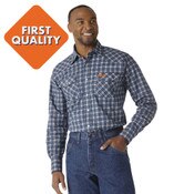 Wrangler FR Long Sleeve Work Shirt in Navy Plaid